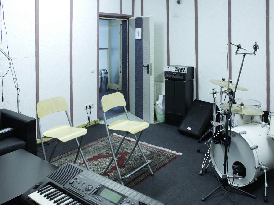 • Schalldämpfende Akkustik-Platten an den Wänden